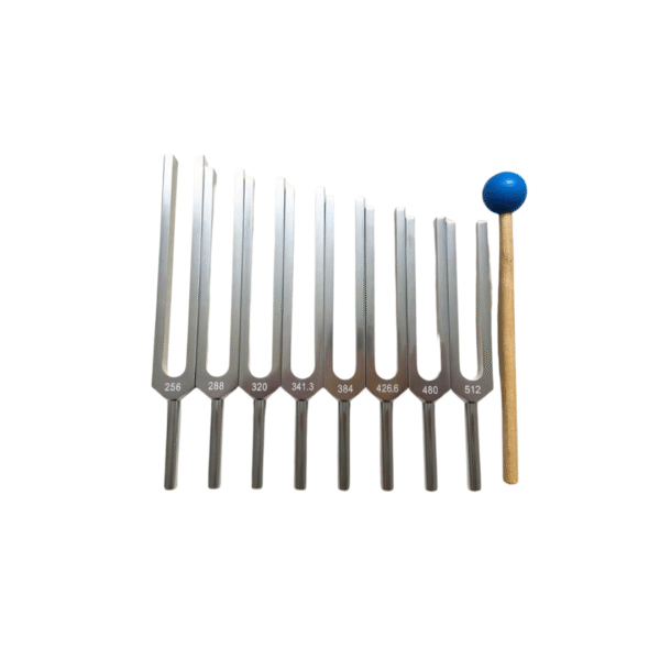 This 8-chakra tuning fork set is also known as the Solfeggio tuning fork set. This ancient Solfeggio scale is most often used to assist with healing deep emotional issues and creating an opening for heightened levels of awareness.