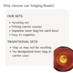 Our deep third octave singing bowls (C3–B3) are expertly tuned to align with the seven chakras, making them ideal for both home and professional use. Despite their portability, they produce powerful resonance and vibrations that help entrain brainwaves, promoting harmony, deep relaxation, and healing on physical, emotional, mental, and spiritual levels. Each set includes one carrier case, seven felt coasters, and a pair of silicone sticks. Free worldwide delivery.